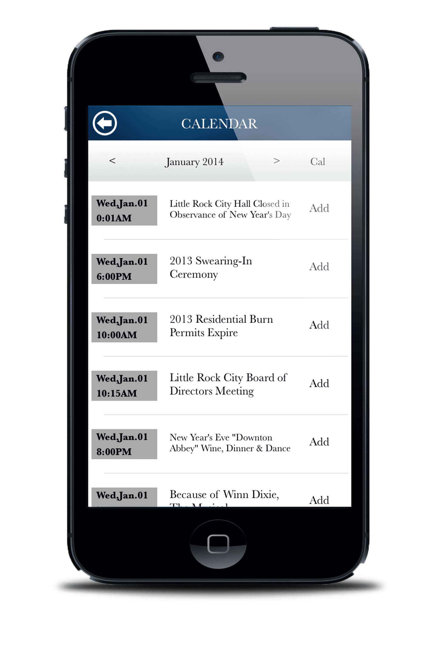 App users can also find local weather information as well a complete City calendar combining the City Government calendar—including City Board meetings, Planning Commission meetings, and other events—as well as the Convention and Visitors Bureau calendar—including a myriad of events happening all across Little Rock like concerts, theater productions, exhibits, festivals, and many other exciting happenings that make Little Rock the #1 Great Place to Live.