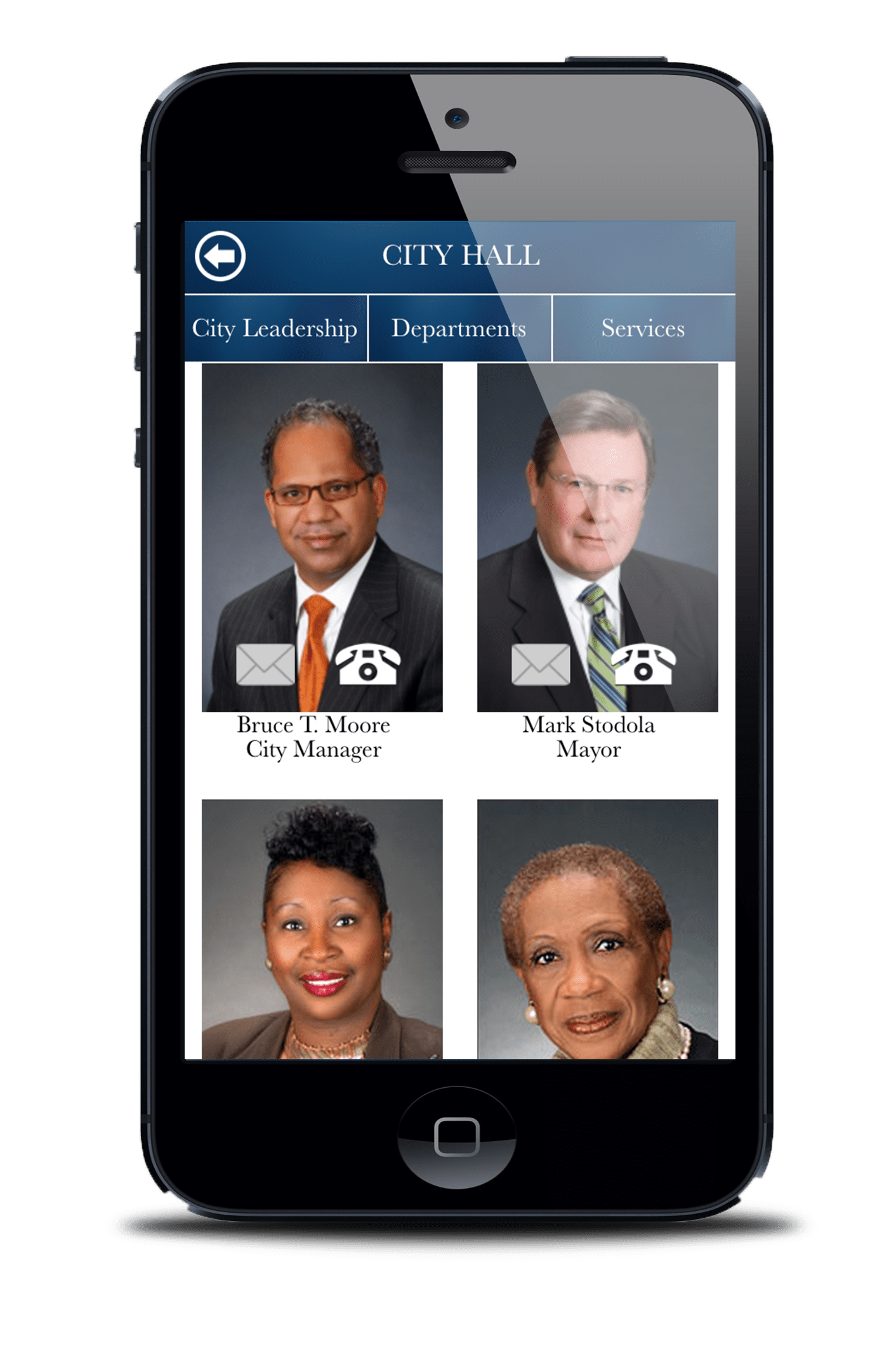 Under the City Hall tab, the app offers the ability to email or call City Manager Bruce Moore, Mayor Mark Stodola and Little Rock City Directors all at the touch of a button. In addition, users can locate all fourteen City Departments as well as other government agencies and send an email or call to get access to vital services.
