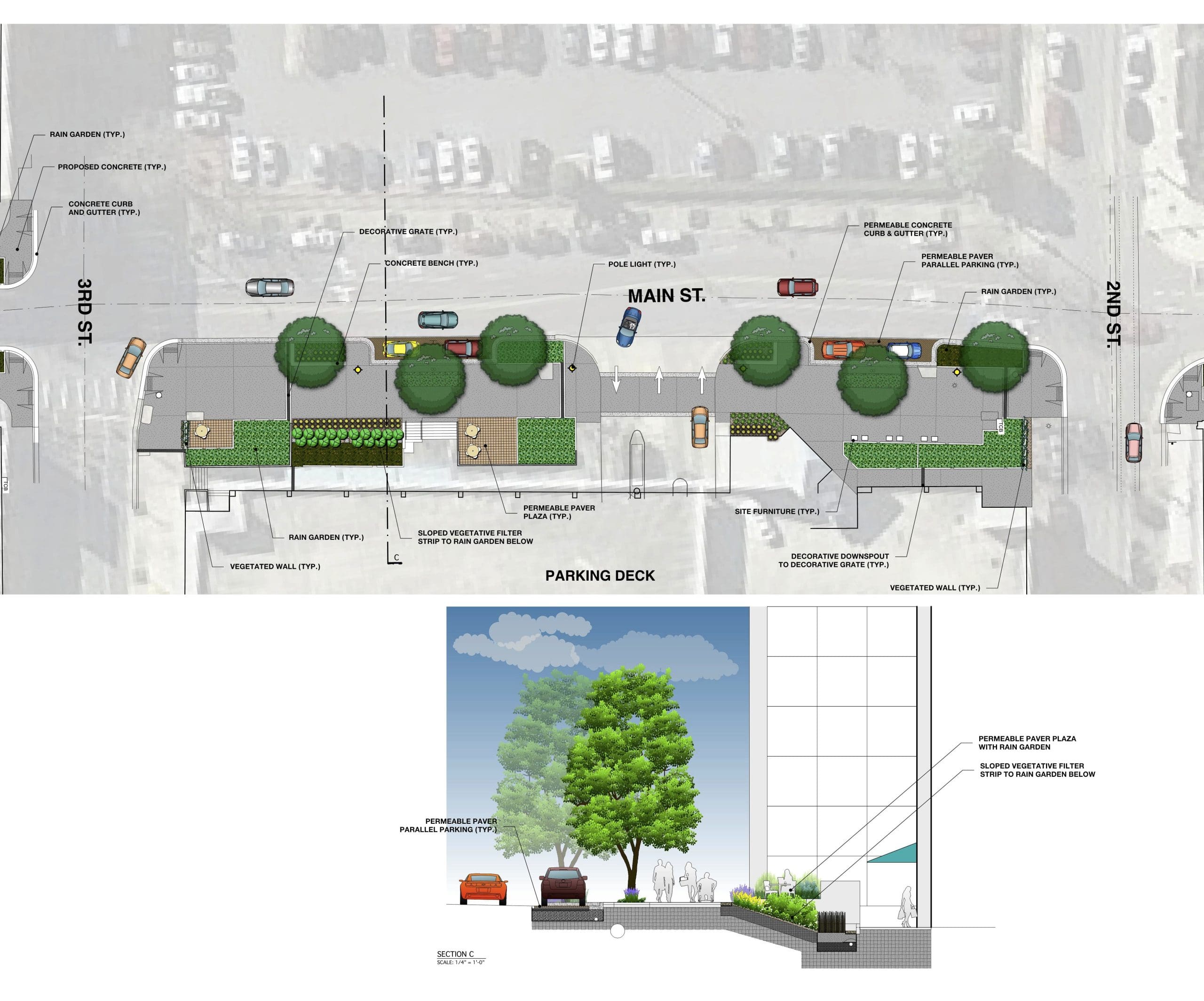 Click here for a link to the full Main Street road drawing. Below are drawings of the planned projects by block: