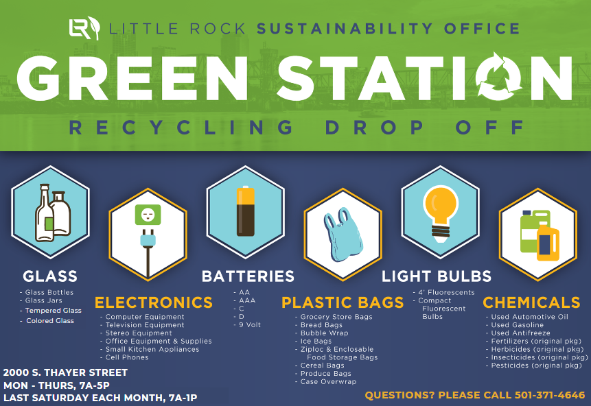 When in doubt, find out! If your item is not accepted at the Green Station, and it’s not listed on the Special Items page, please contact us at recycle@littlerock.gov or at 501-371-4646.