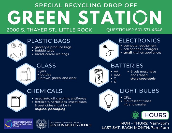 - The Little Rock Green Station accepts 4 foot fluorescent tubes and household CFLs.