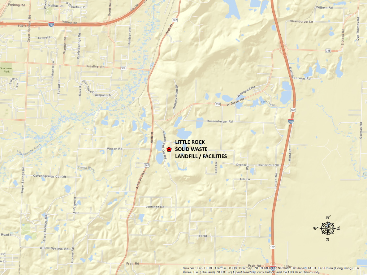 - Solid Waste Facility Location Map – 34°38’57.0″N 92°18’03.6″W – 34.64917, -92.3010