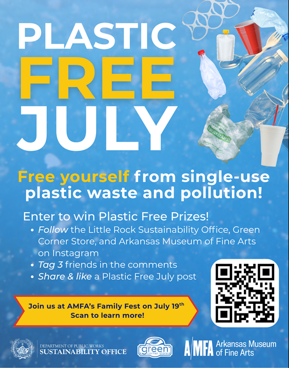 This year’s campaign includes a prize giveawayFamily Fest at the Arkansas Museum of Fine Arts, and weekly tips to build up your plastic-free habits, with a focus on single-use plastics.