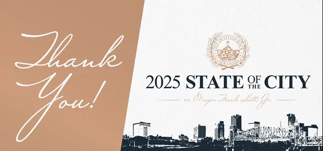 State of the City 2025 The State of the City address is an opportunity for residents to hear directly from Mayor Frank Scott, Jr. about the transformative work in progress in Arkansas’s capital city and about how we are delivering results in 2025.