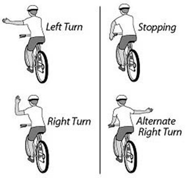 Figure 2.  Signals for turning and stopping on a bicycle.