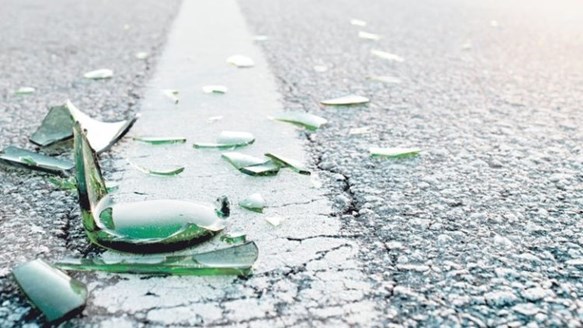 Figure 1.  Glass on the road can be nearly invisible until a rider is very close to it.  An instantaneous reaction to swerve around the glass could result in a collision if drivers do not give cyclists an adequate buffer.