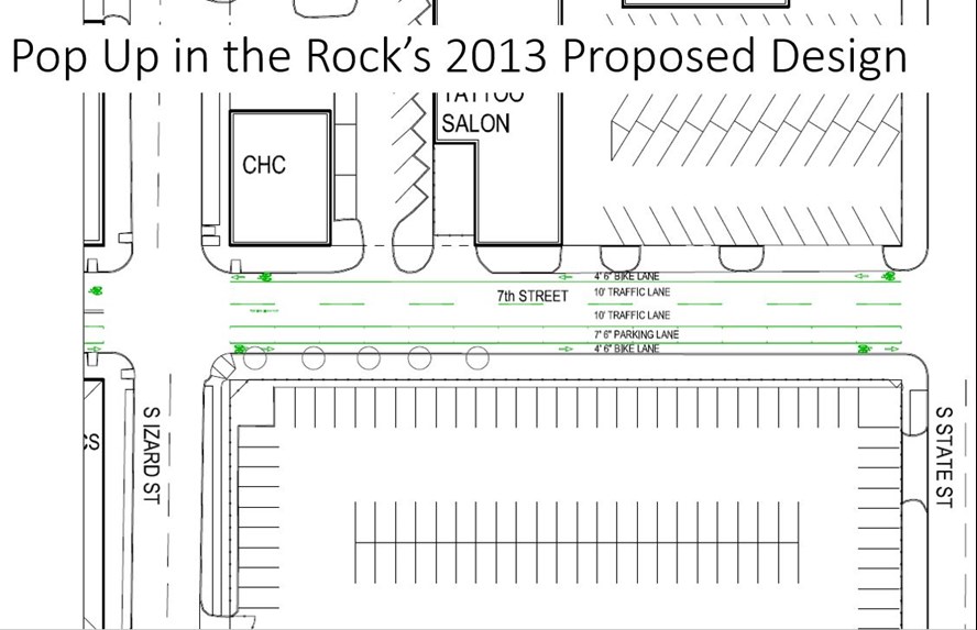 Figure 2. Pop Up in the Rock’s 2013 proposed design for the 7th Street bike lanes.