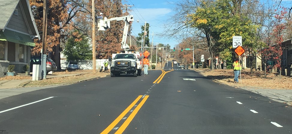 Like the Main Street and 12th Street projects, understanding how this facility was accomplished may inform future efforts to create bicycle facilities. While the Main St. project was largely business district-driven, and the 12th St. project was largely BFCC-driven, the Van Buren project was largely City staff-driven. Little Rock’s Bicycle and Pedestrian Coordinator has the opportunity to review resurfacing projects and consider how those streets might contribute to our bicycle network. Van Buren was on the list of 2017 Resurfacing Projects. Reviewing Van Buren St., I saw a clear need for bike lanes for the reasons discussed above. Public Works and Traffic Engineering City staff discussed the project and saw little controversy, cost, or conflicting needs. The number of vehicular lanes weren’t decreasing, vehicular lanes were just getting narrowed to a 10 ft. width more appropriate for the street type. Street parking wasn’t being taken away; no parking was allowed on the street prior to the bike lane installation. City staff made the call and installed the lanes.