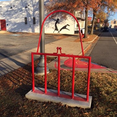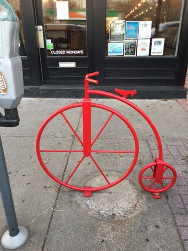 The South Main Business District has added bike racks that are functional, artistic, and congruent with the their district’s aesthetic. The bike racks match themes of SOMA businesses (Pictures 1-8). SOMA is quickly becoming the bicyclist’s business district!