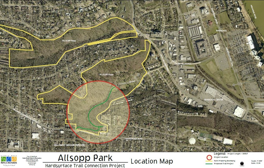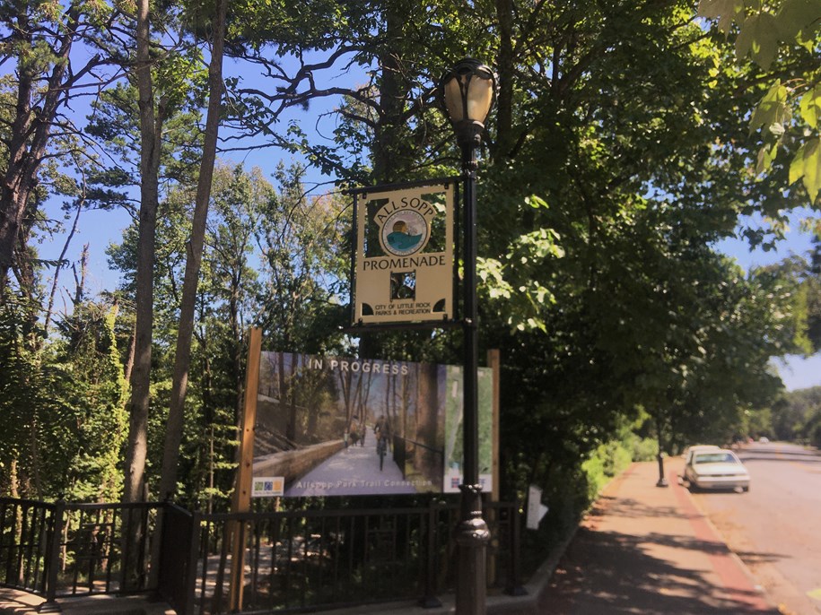 In 2020, the City of Little Rock, with support from Metroplan Transportation Alternatives Program (TAP) funding, connected the Hillcrest Business District to the existing Allsopp Park Trail and the core of Allsopp Park South with a concrete trail (Figs. 1-4). The trail provides pedestrian access from Hillcrest to Allsopp Park (there are no sidewalks along Cedar Hill Rd.) and a safer, more direct bicycle connection from the Hillcrest Business District to Allsopp Park and the Arkansas River Trail.