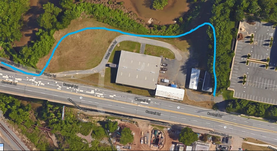 Figure 1. The new trail route runs along the river and then back to the sidewalk in front of Dillard’s Headquarters.