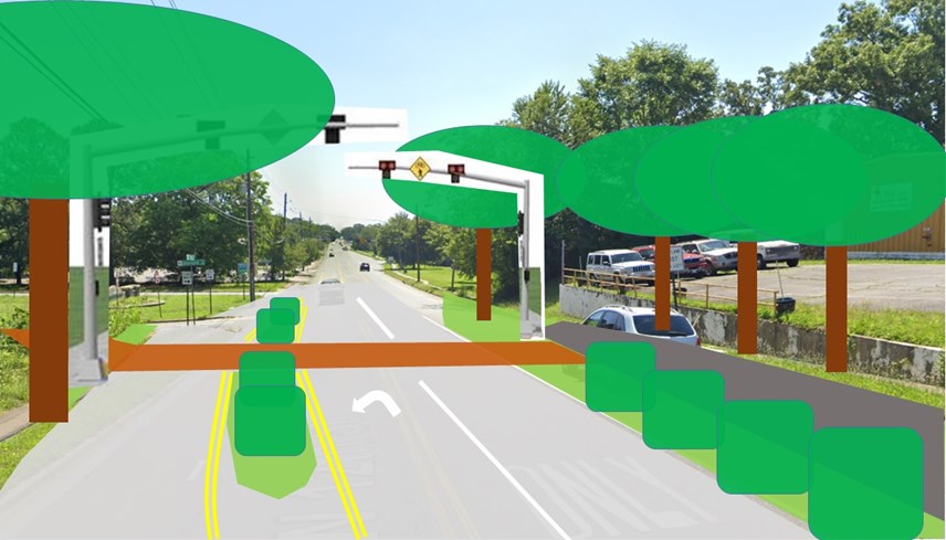 Figure 9. An aerial view of the proposed intersection treatment for the zoo staff entrance.