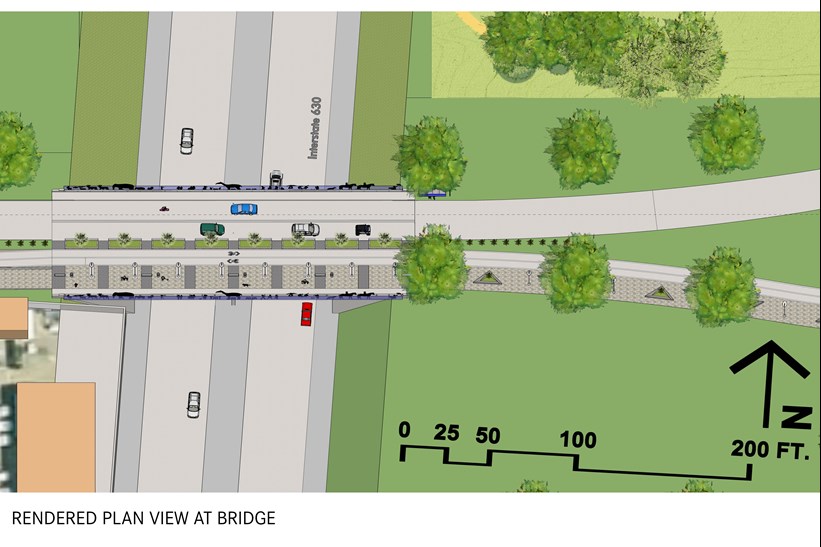 Figure 7. 3-D concept of the Jonesboro Children’s Trail on the I-630 overpass (image from Polk Stanley Wilcox).