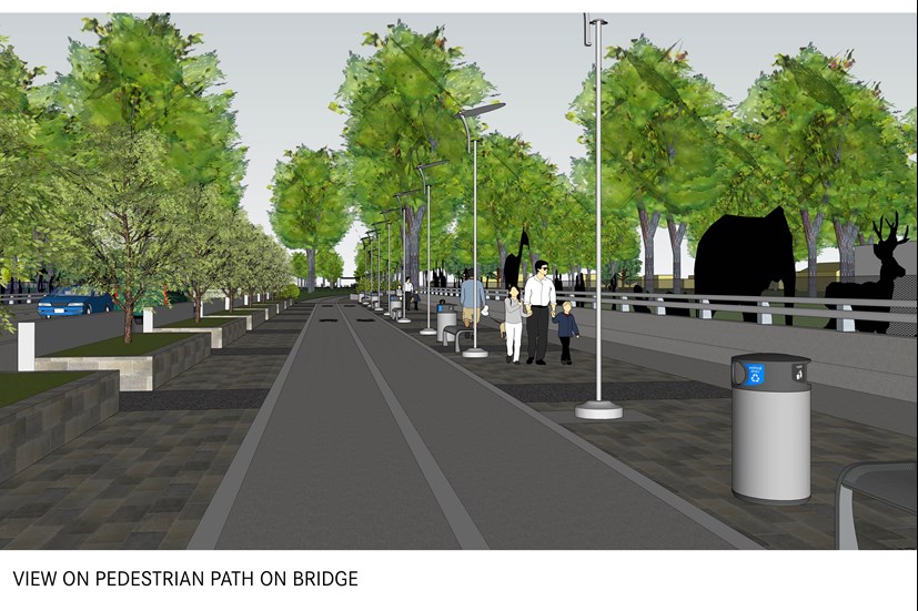 Figure 3. Lighting and other elements between 12th Street and the overpass will help create a comfortable corridor (image from Polk Stanley Wilcox).