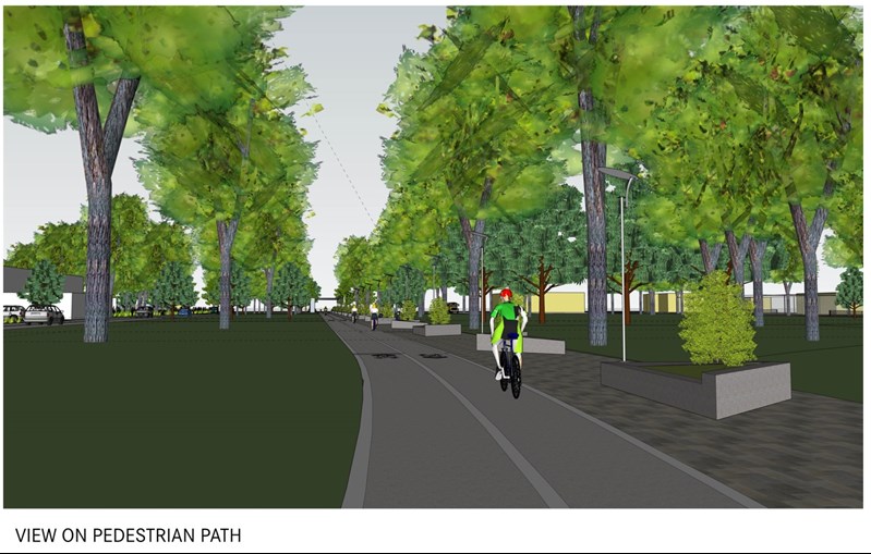 Figure 16. Canopy trees and other landscaping will be important for traffic calming and trail user comfort.