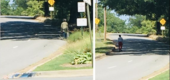 Figure 21. For those who are familiar with how fast traffic currently moves on Jonesboro, these pictures are scary. Photos by Katie Helms, Saturday September 17, 2022 (2022 BikePed Count).