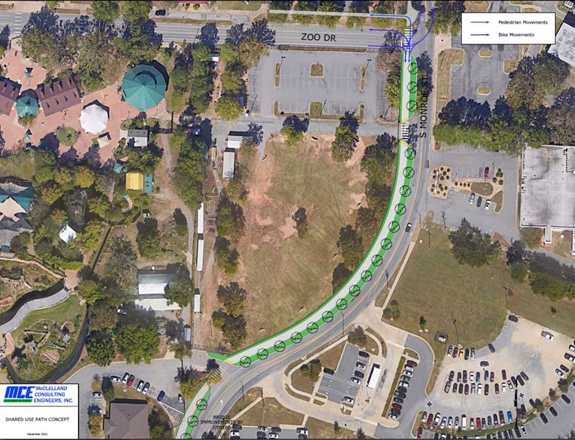 Figure 8. An aerial view of the proposed sidepath along Monroe St. from the I-630 overpass to Zoo Dr. (image from McClelland Engineering).