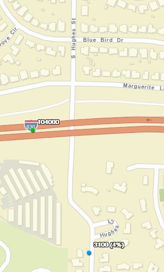 Figure 2. Traffic is light (~3,100 ADT) at the intersection of Hughes and the I-630 trail. Map from ArDOT.