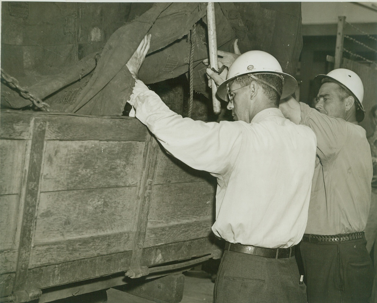 New Troop-Carrying Glider in Production, 8/27/1942. Air-borne infantry have landed in this new U.S. Army Air Forces CG-4A 15-place glider and are ready for action. This practice maneuver may soon be repeated many times over “for real”, for gliders of this type will soon be our first line of offense in invasion against the Axis. The craft are now in quantity production by Boeing, Beech, and Cessna at Wichita, Kansas, and skilled pilots are being turned out for them by the Army Air Forces. In spite of their size, these gliders weigh only about 3,000 pounds, and two or more of them can land in almost any small field or pasture. Credit: (ACME);