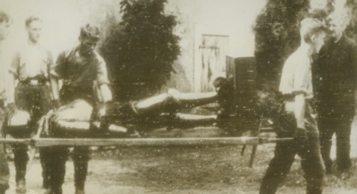 Wounded Italians Carried to Rear, 12/14/1943ITALY – Seriously wounded Italian soldier, injured in the first battle in which Italians went into action against their form Nazi allies, is carried to a rear dressing station by his comrades.Credit (Acme Photo by Sherman Montrose for the War Picture Pool, transmitted to the U.S. by Signal Corps Radiotelephoto);