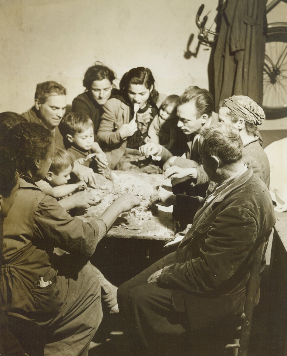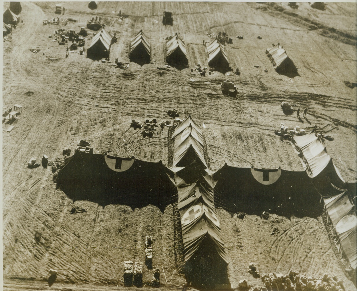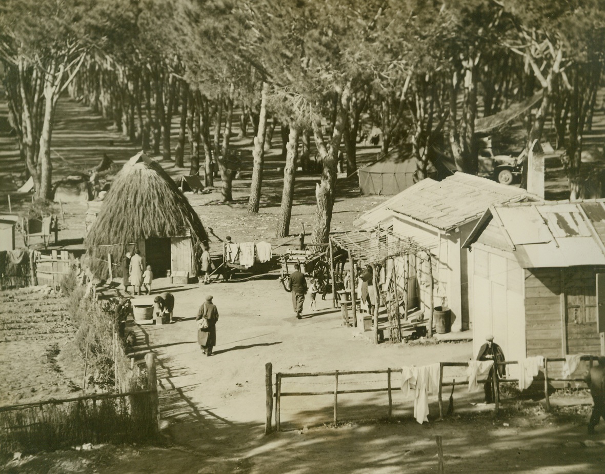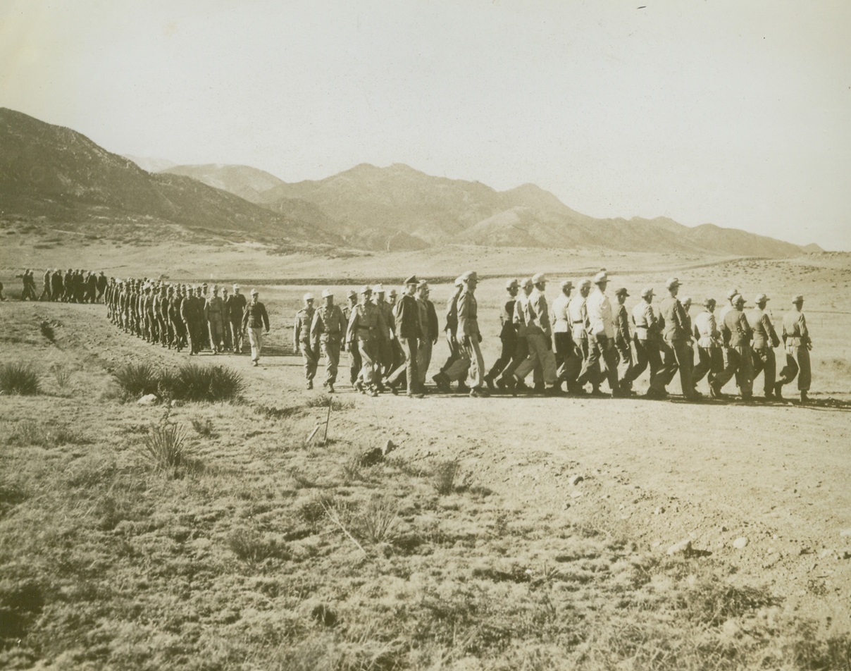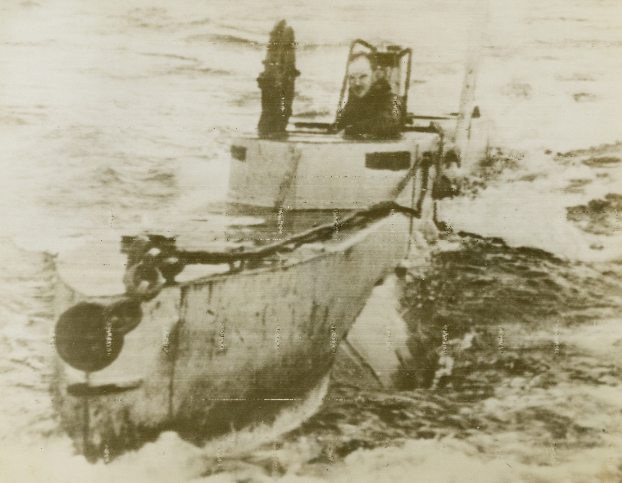 Battered at Beachhead, 2/11/1944. ITALY – Injured fighters who are able to walk, watch their more seriously wounded comrades being loaded aboard a warship off the Anzio-Nettuno beachhead. The shore may be seen, dimly, in the background.Credit Line (ACME);