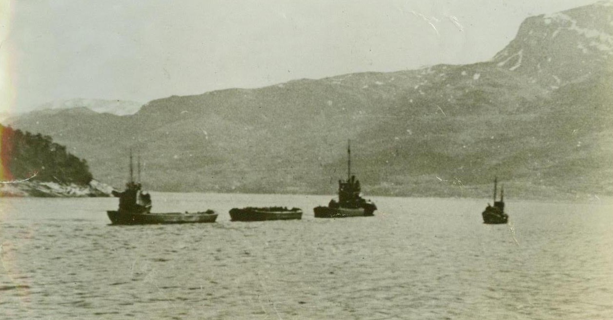 Nazi Mass Murder In Norway, 1/23/1943. In June 1942, 900 Serbian Prisoners of War arrived at Breisfjord in Ofoten. Many of them were suffering from Typhus, and they were shot by the SS-Guard. The prisoners were then moved in small barges to Treldal and from there to Jernmannet by the Osot-Railway not far from the Swedish border. There from two to three hundred were shot because they were suffering from Typhus. Photo shows- the arrival of the prisoners at Treldal. 1/23/43 Photo Norwegian Embassy From ACME;