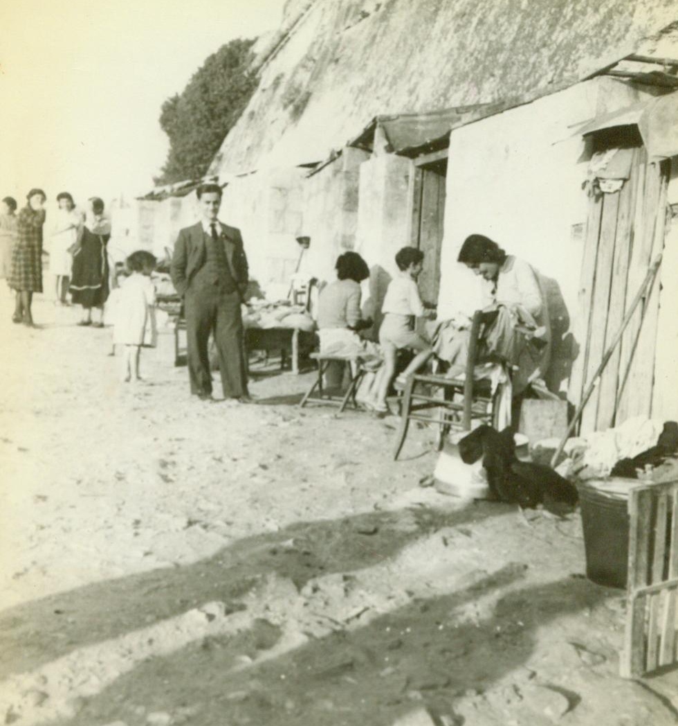 Happy Homes – And Safe, 1/18/1943. Malta – Although there is little left of Malta’s cities after innumerable bombings, but piles of rubble, the Maltese have retained their fine spirit. Here, in front of homes hewn out of the walls of an old fort, people of Malta go happily about their daily tasks in the warm sunshine. Several Maltese in background, seem amused at having their picture taken. 1/18/43 Credit Line (ACME);