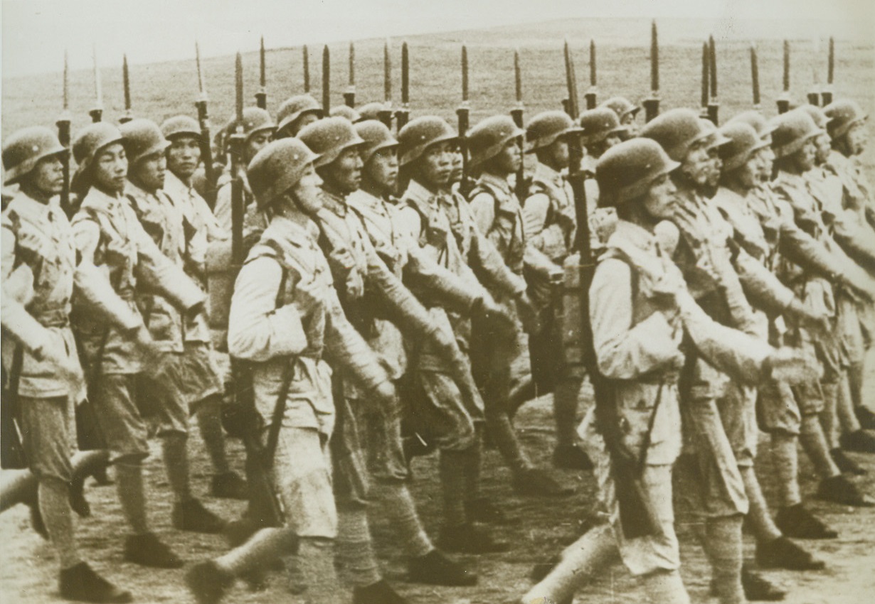Anniversary of Chinese Revolution, 1/6/1943. Changtu, China – Chinese infantrymen march in a parade held to commemorate the 31st anniversary of the Chinese revolution and the birth of the Chinese Republic. The parade was held in Changtu, capitol of the Province of Szechwan, which is the center of Chinese resistance to Jap invaders at the present time. Credit line (ACME);