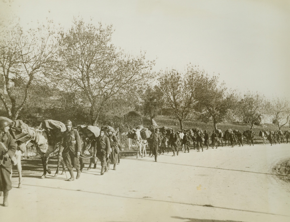 Giraud’s Men Advance, 1/6/1943. Somewhere in Tunisia – French soldiers, fighting under the command of General Henri Giraud, move up to action in Tunisia. Recent reports from the Tunisian front indicate that the allied troops are only 30 miles from Bizerte. The closest they have been since the opening days of the Tunisian campaign. Credit line (ACME);