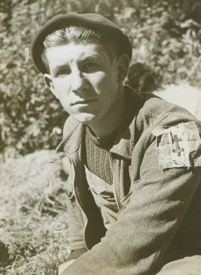 The Underground Has Its Day, 7/17/1944. Normandy – After four long years of fearless resistance to the Nazi oppressors of France, the French Underground today is gradually emerging from hiding to fight the last lap of its battle for freedom. Gleaning vital information about German fortifications, the patriots try to establish contact with Allied forces moving through Normandy. They come in small groups of two and three, bringing their useful news to Allied commanders, sometimes revealing enough Nazi secrets to shorten our battle by days, even weeks. In these first photos of patriots joining hands with Yank forces, two Frenchmen make their report at American Headquarters near Cherbourg, before that city fell to the Yanks. One aged 18, and the other aged 27, the patriots had spent a day behind German lines defending that city before making their way to American Headquarters. This is the face of a Frenchman who refused to believe that his country could be kept beneath the German heel. A mere boy of 14 when France fell, the 18-year-old had been defying Hitler’s forces for four years. He wears the Cross of Lorraine – the insignia of the French Underground – on his arm. Credit: ACME photo by Bert Brandt, for the War Picture Pool;