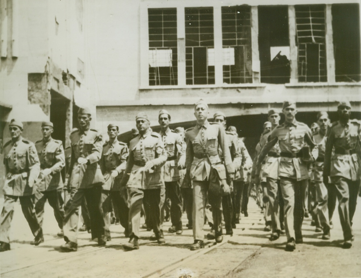 Brazilian Army in Italy, 7/26/1944. ITALY — The first contingent of Brazilian troops march in Naples, Italy, after their arrival. They are on their way to the staging area before entering actual combat. Troops reached Naples July 16th. Credit (ACME);