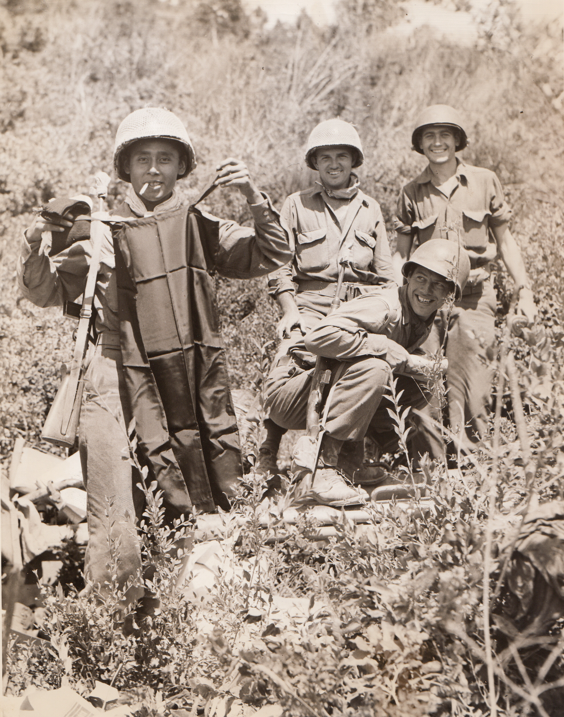 Silk Chemise Now Yank Prize, 7/24/1944. ITALY – Pfc. Ignacio Villarceal, San Antonio, Tex., proudly displays a black silk chemise, war booty which he found near a knocked-out German self-propelled gun in the kit of a dead Nazi. The Germans had looted the silk undergarment from an Italian store. Villarceal is a member of a recon unit near Leghorn.;