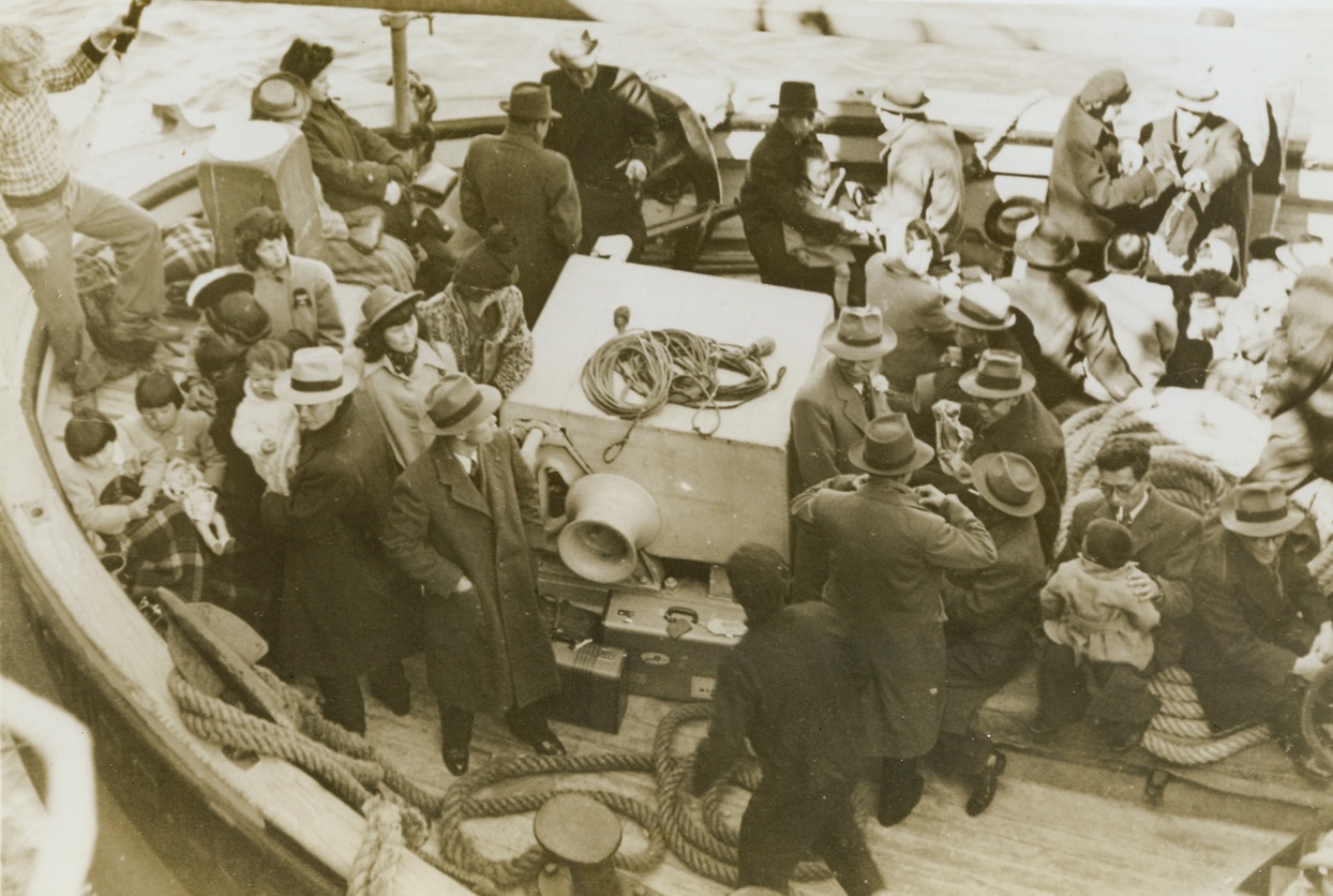 Exchange-Ites, 9/29/1943. Montevideo, Uruguay—Japanese diplomats and business men, and their families, shown on the tug “Antonio Lussich” in Montevideo Harbor, to be transferred to the Swedish Liner Gripsholm for shipment to Porto de Goa; Portuguese possession. There they will be exchange for a group of Chileans who were interned by Nazi authorities in Germany.Credit: ACME.;