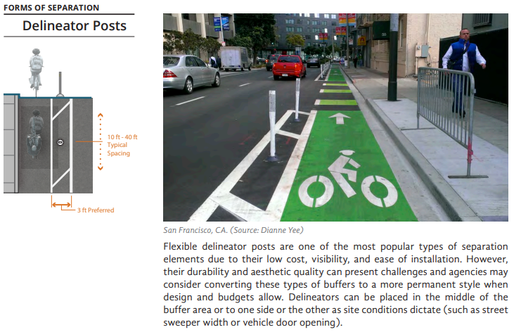 Figure 9. FHWA description of a bike lane protected by delineator posts.