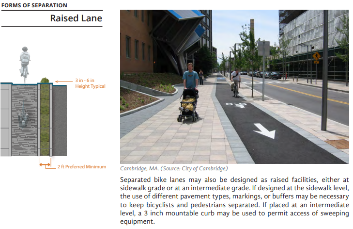 Figure 39. FHWA description of a cycle track protected by a raised lane.
