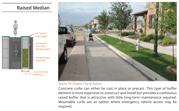 Figure 35. FHWA’s description of a raised median as a physical barrier for a cycle track.
