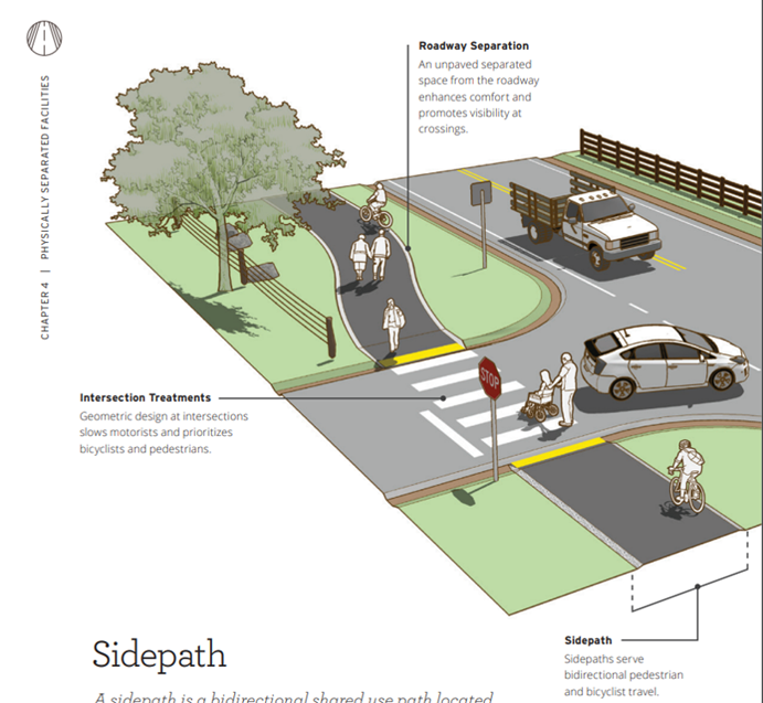 Figure 43. FHWA description of a sidepath (Small Town and Rural Multimodal Design Guide).