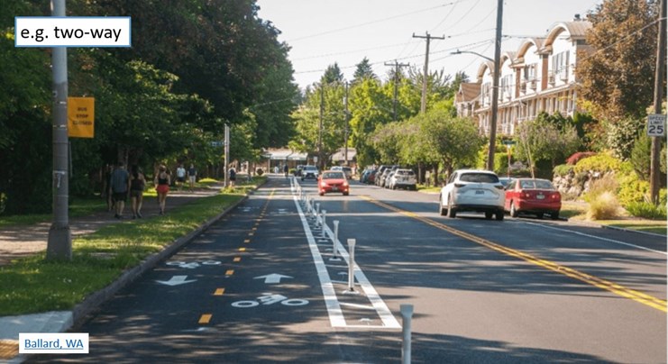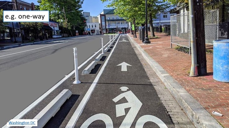 Figure 13. Example of a two-way delineator-protected bike lane in a historic neighborhood.