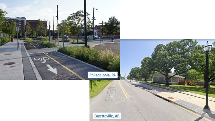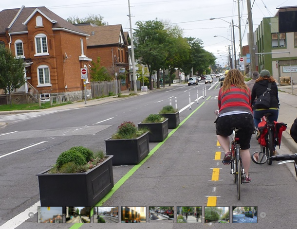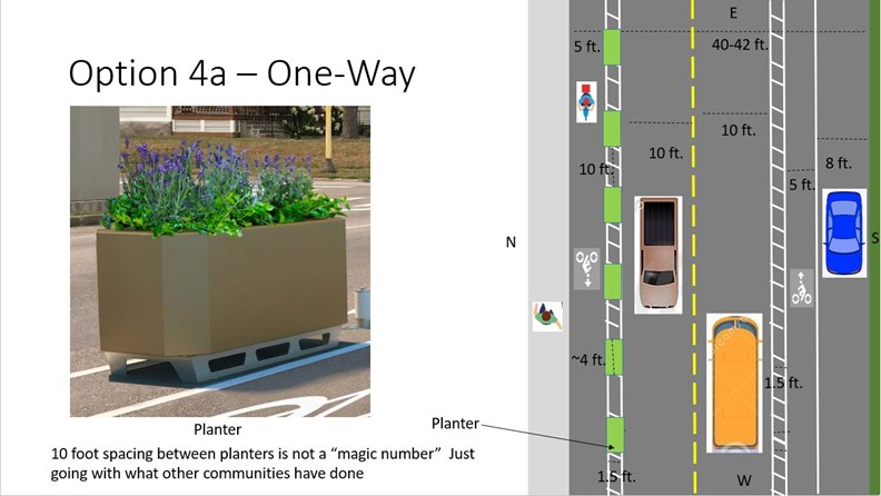 Figure 14. FHWA presentation of planters as a physical protection of a bike lane.