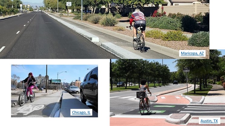 Figure 42. Examples of a cycle track protected by a raised lane.
