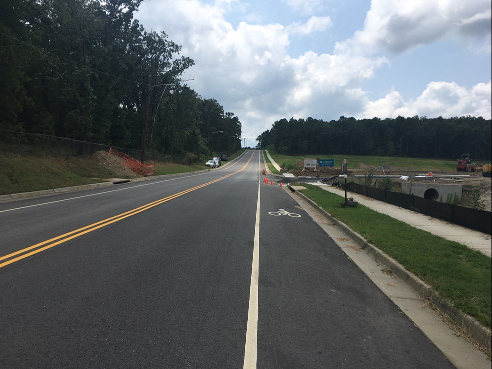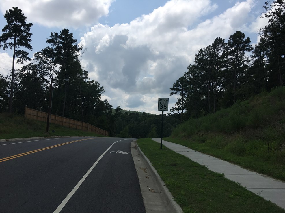 The bike lanes on LaMarche Drive from Taylor Loop to Chenal Valley are installed (Figs. 1-4)! More than just a resurfacing project, this project actually created a section of LaMarche from Garden Valley to Courts Blvd. to support the new development being installed between them and create a continuous road from Taylor Loop to Chenal Valley. This completes another piece of the Taylor Loop Connection.