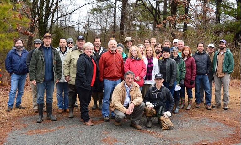 Figure 7. Members of the Southwest Trail Task Force hike part of the proposed Southwest Trail route from Geyer Springs to Shannon Hills in January 2017.