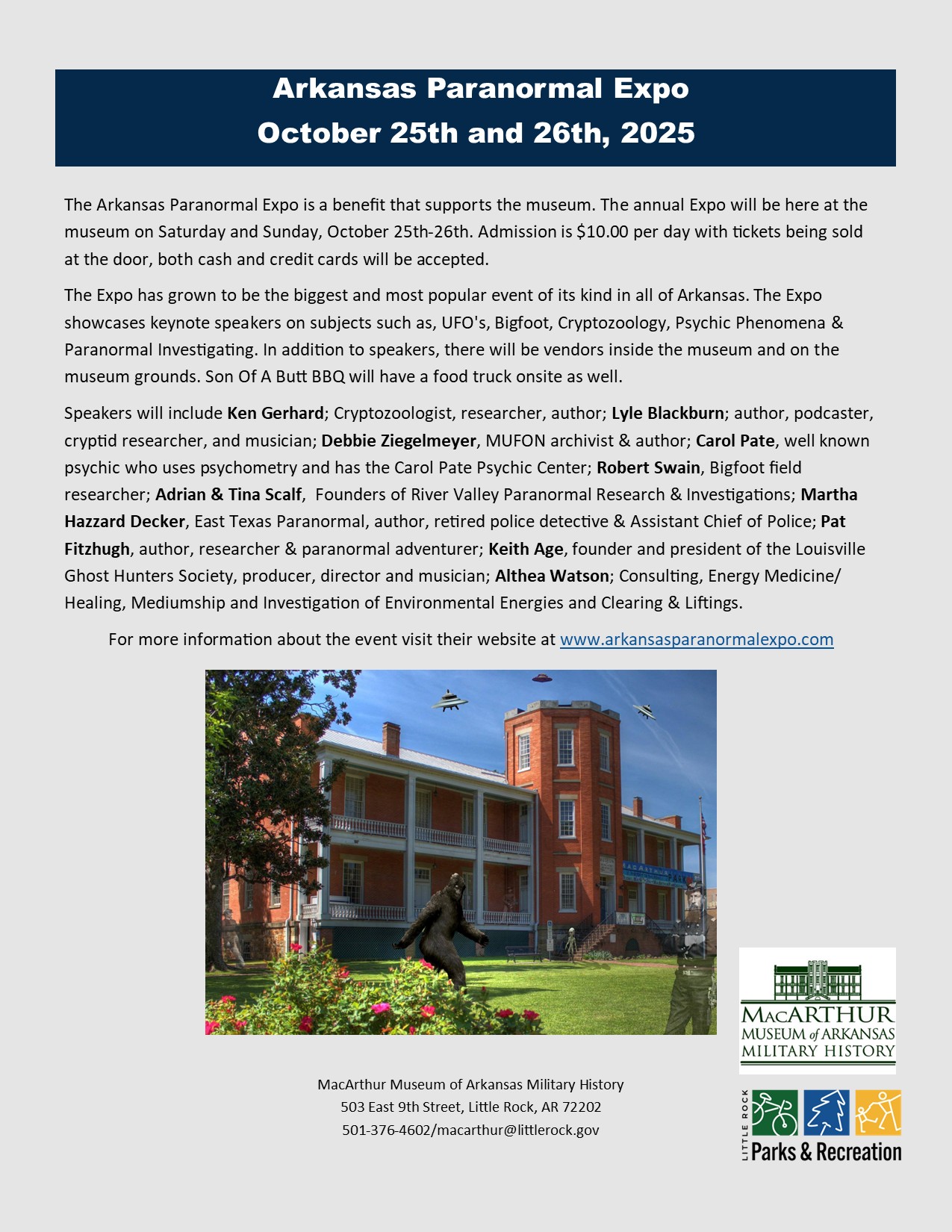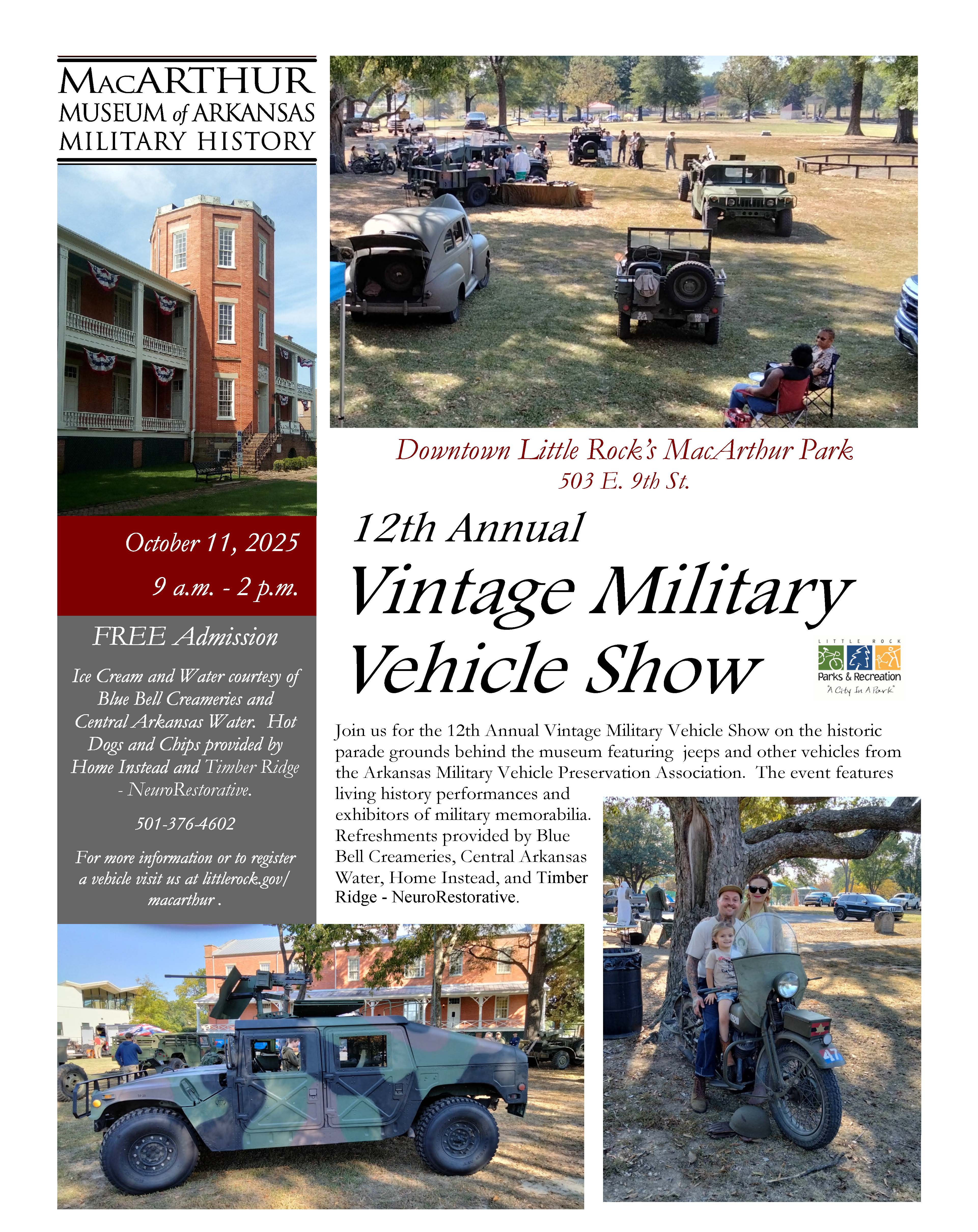 The MacArthur Museum of Arkansas Military History was created to interpret our state's military heritage from its territorial period to the present.
